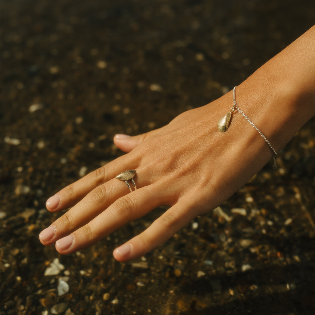 Wir haben an verschiedenen Stränden entlang der Flensburger Förde die schönsten Muscheln und andere Schalentiere gesammelt und sie nach eingehender Begutachtung in den Edelmetallen gießen lassen. Aus diesen 1:1 abgeformten Rohlingen haben wir gemeinsam mit unseren Goldschmieden wundervolle Schmuckstücke entworfen und hergestellt.