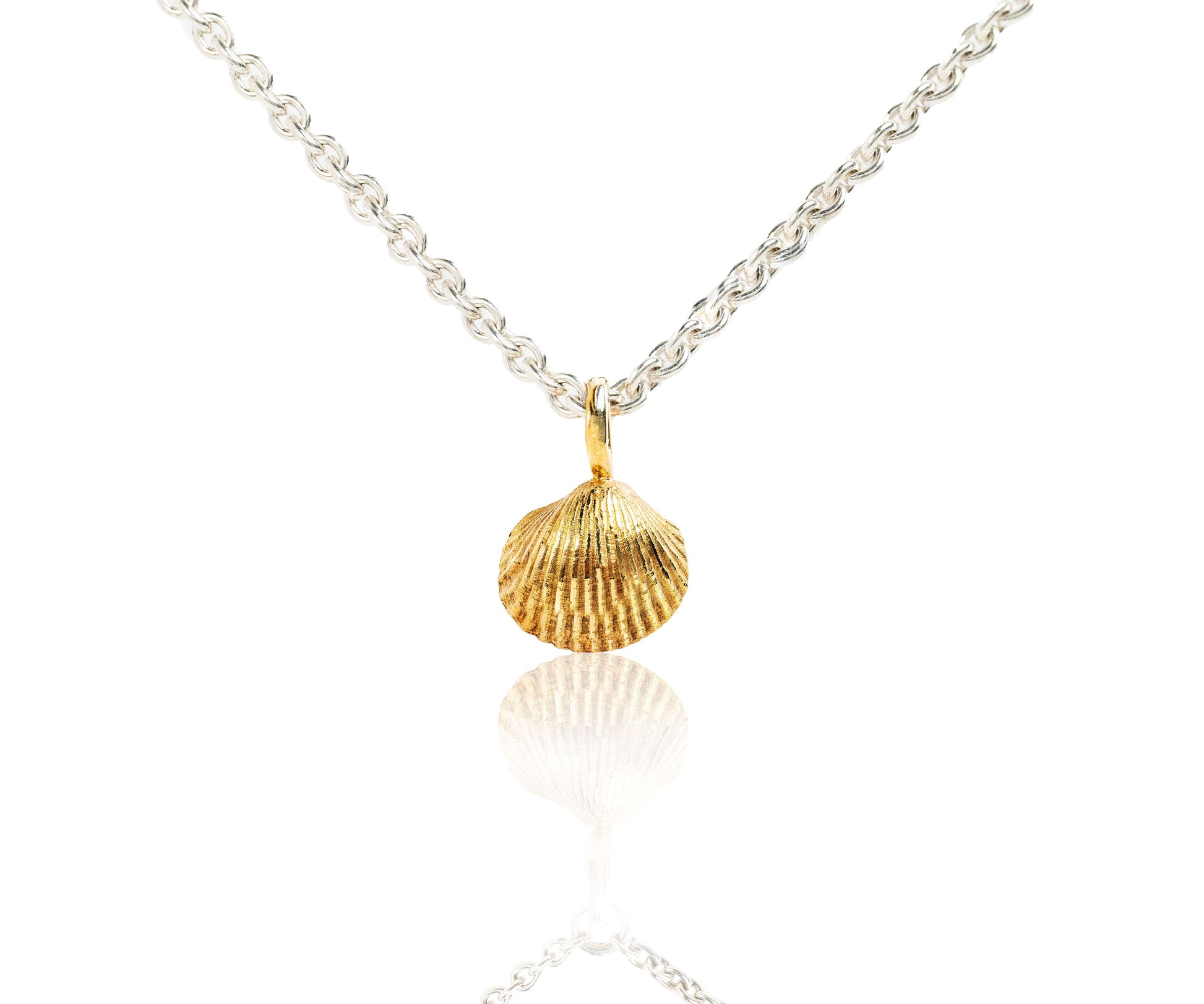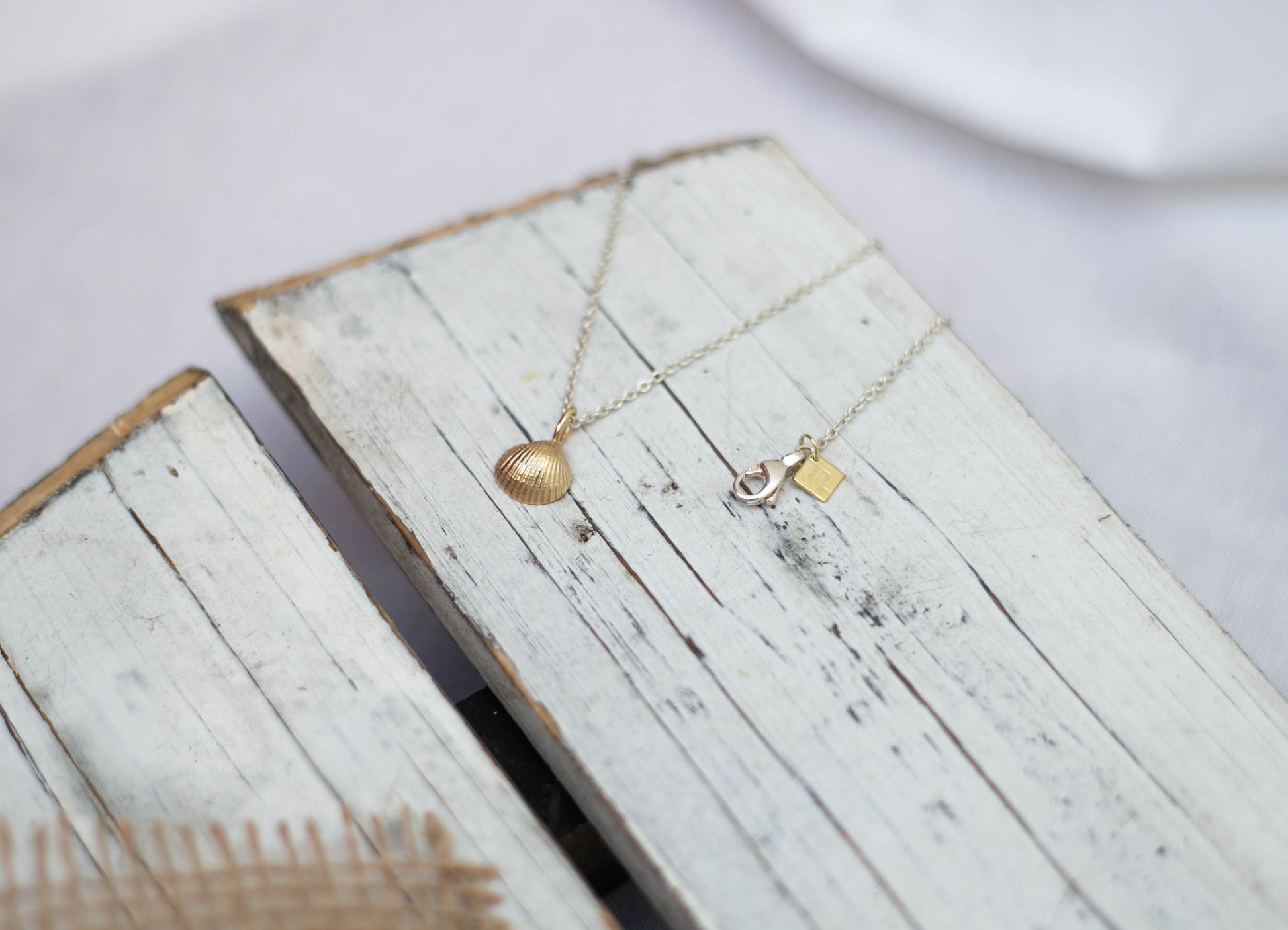 Die kleine Herzmuschel aus Wassersleben in 585/- Gelbgold an einer 925/- Rundankerkette für den Hals