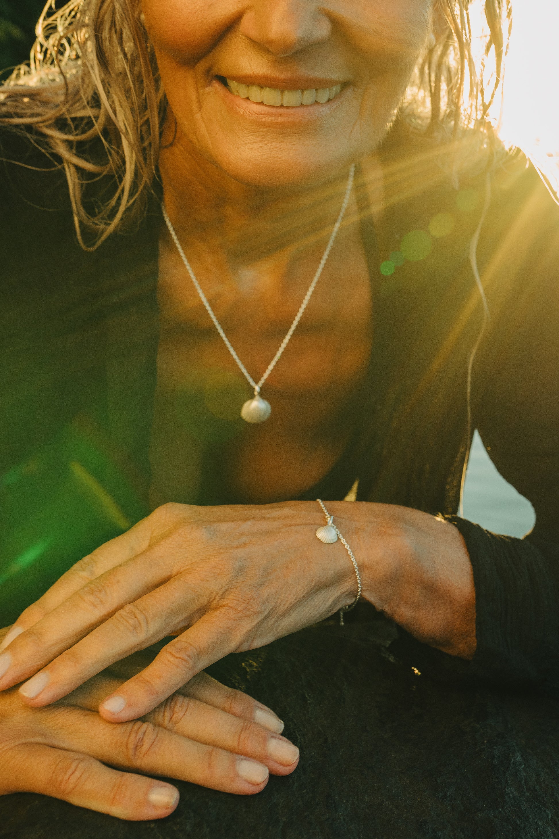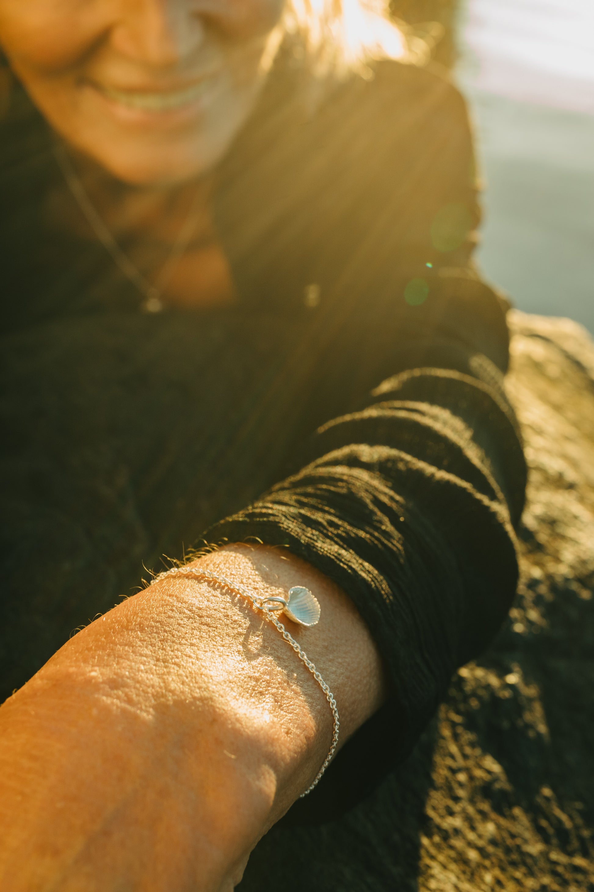 Die kleine Herzmuschel aus Wassersleben in 935/- Silber an einer 925/- Rundankerkette für den Arm