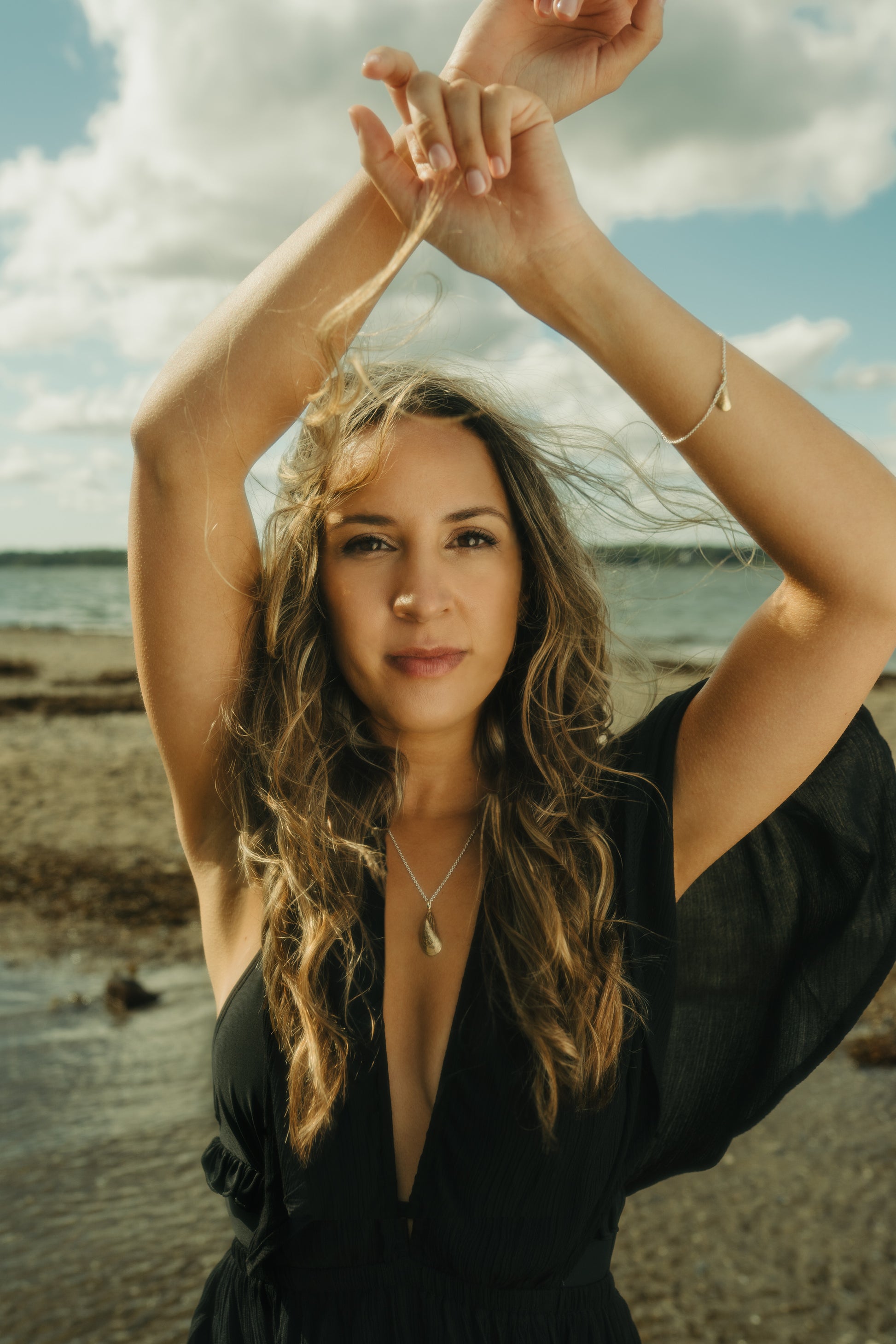 Die kleine Miesmuschel aus Glücksburg in 585/- Gelbgold an einer 925/- Silber Ankerkette für den Arm