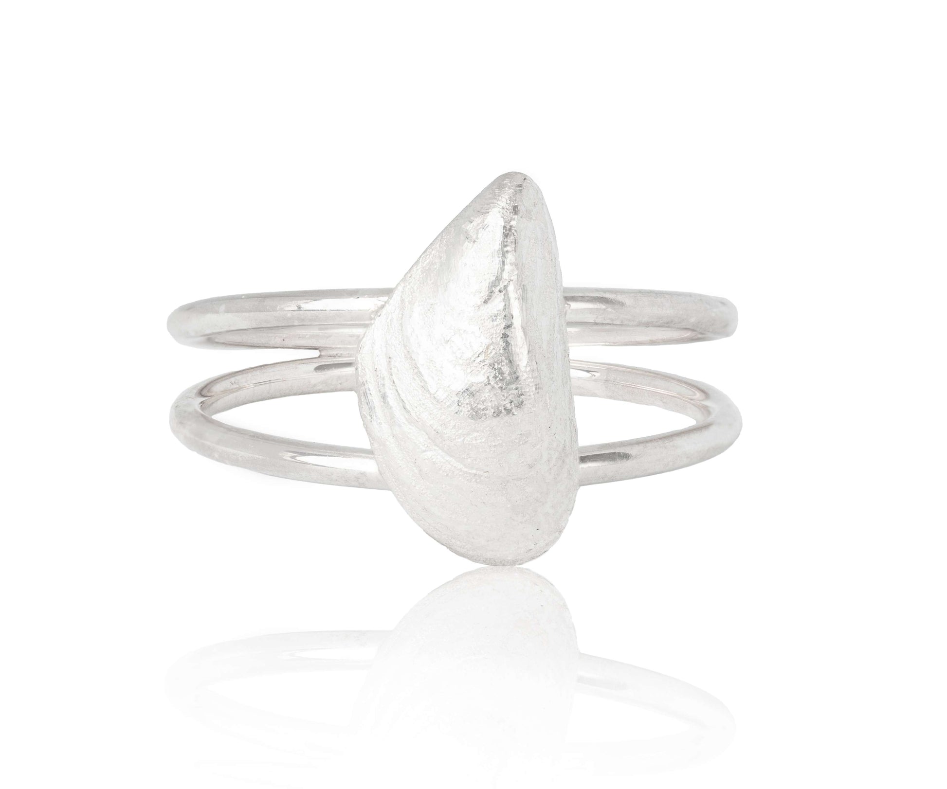 Die kleine Miesmuschel aus Glücksburg in 935/- Silber als Fingerring auf doppelter Ringschiene in 925/- Silber in den Ringweiten 50, 52, 54, 56, 58, und 60.