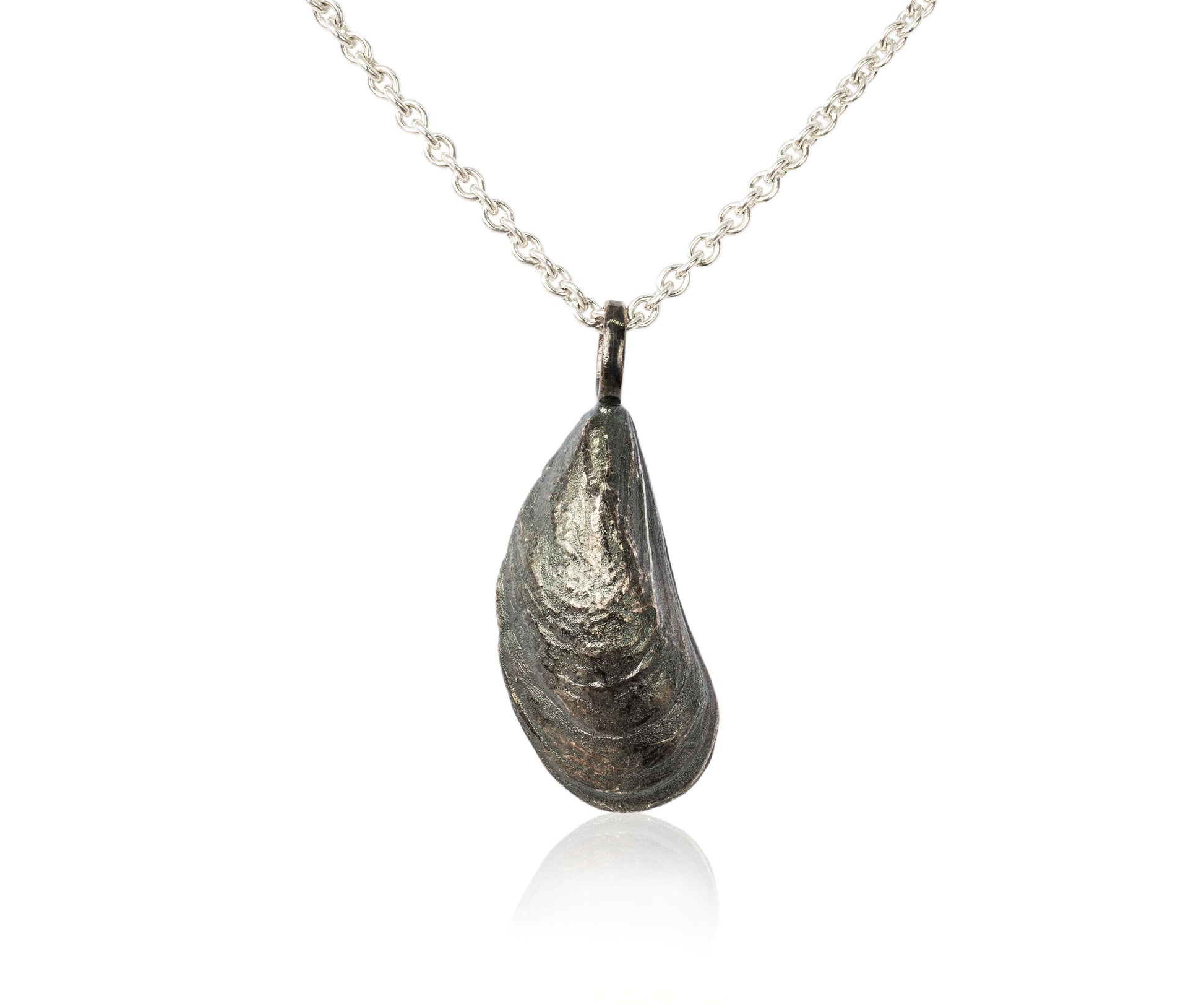 Die mittelgroße Miesmuschel aus Glücksburg in Silber (geschwärzt) für den Hals