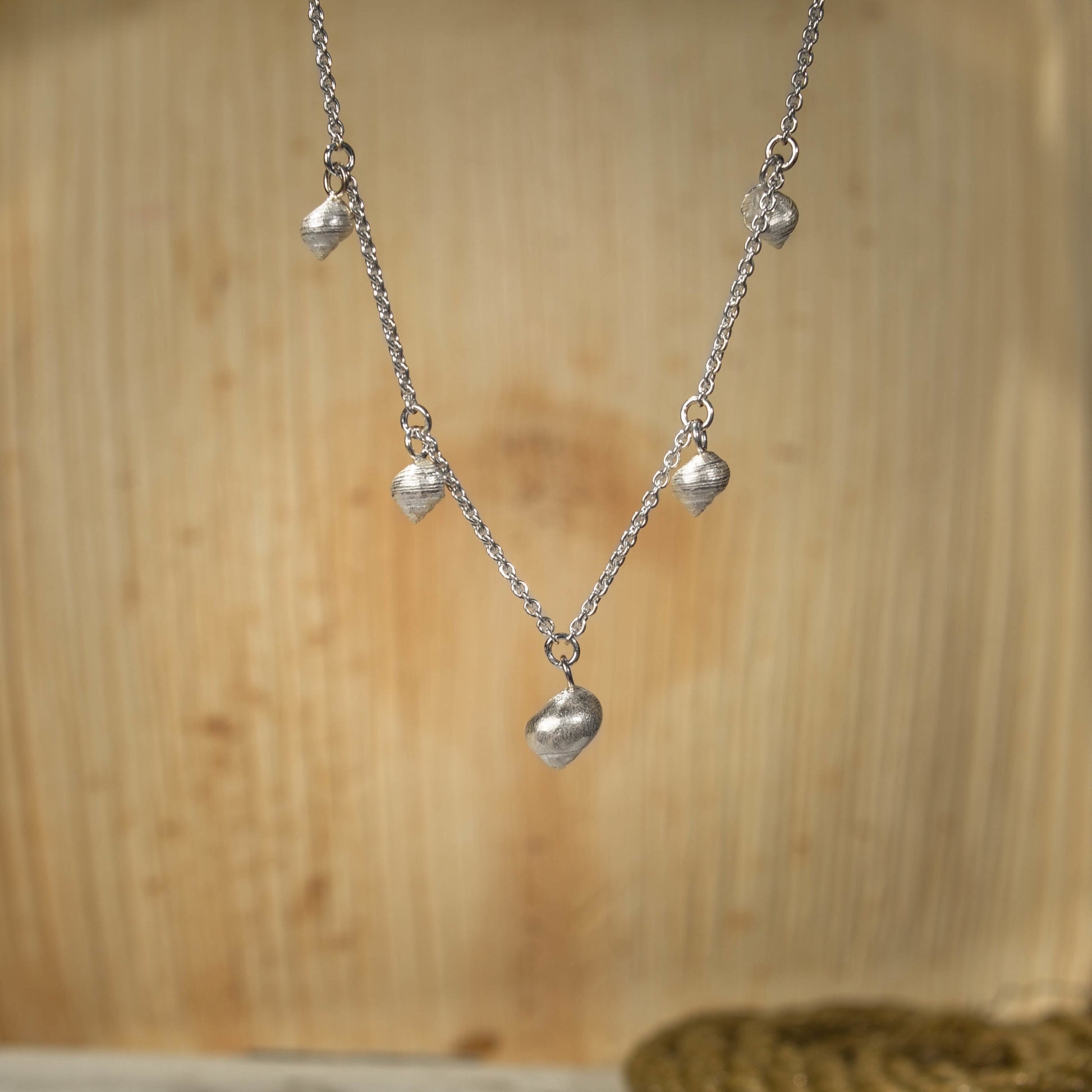 Die 5 kleinen Schnecken aus Holnis in 935/- Silber an einer 925/- Rundankerkette