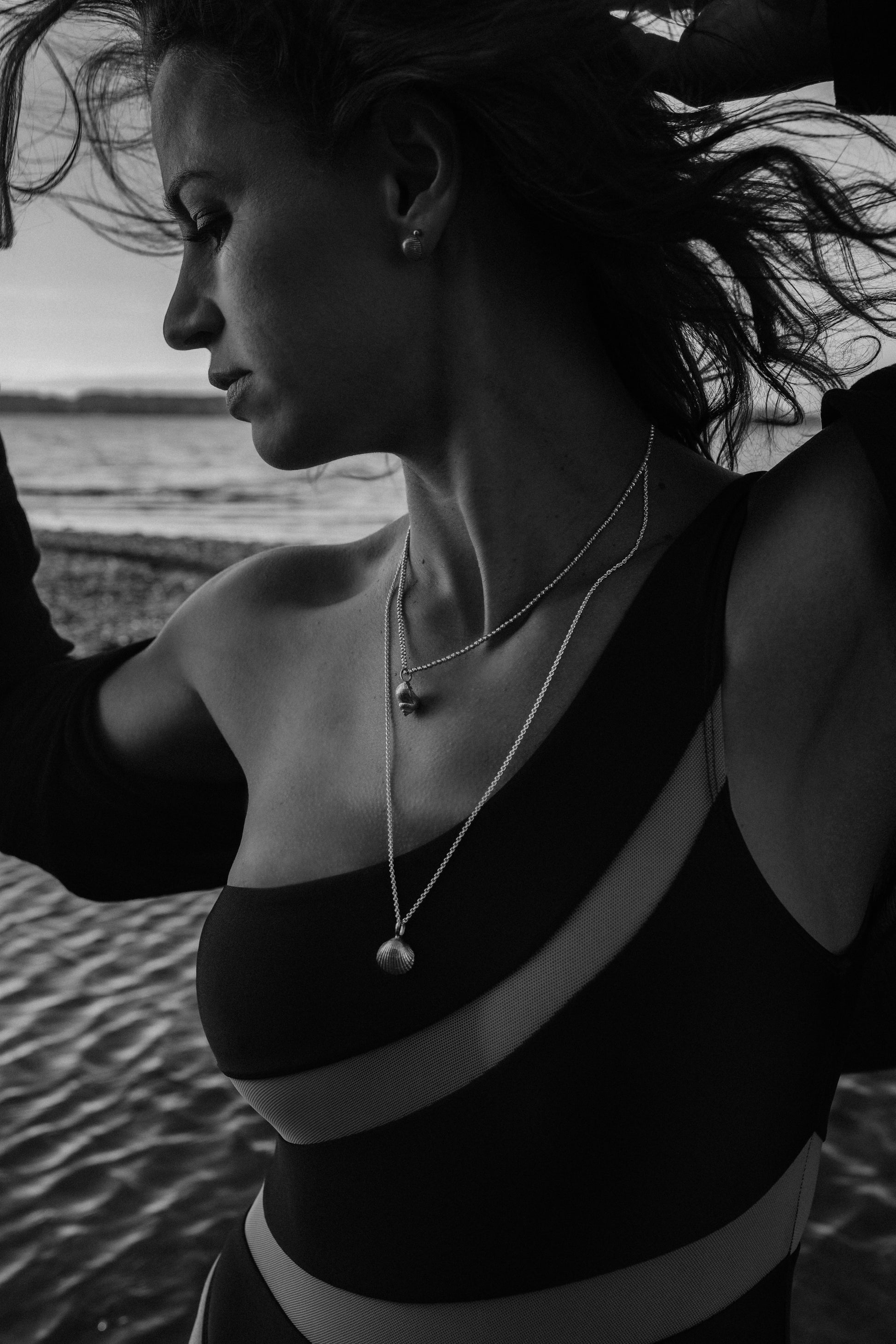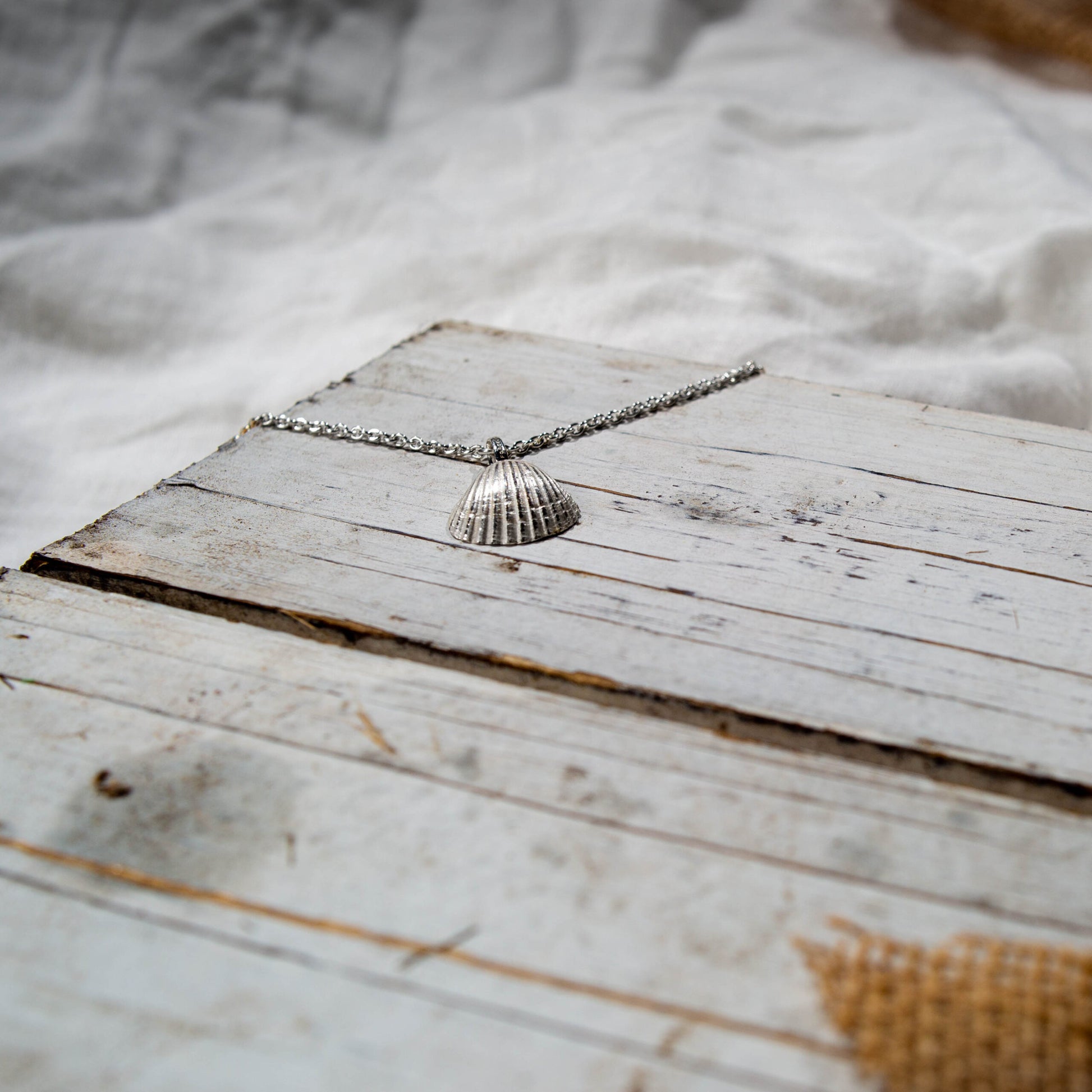 Die große Herzmuschel aus Wassersleben in 935/- Silber an einer 925/- Rundankerkette für den Fuß.