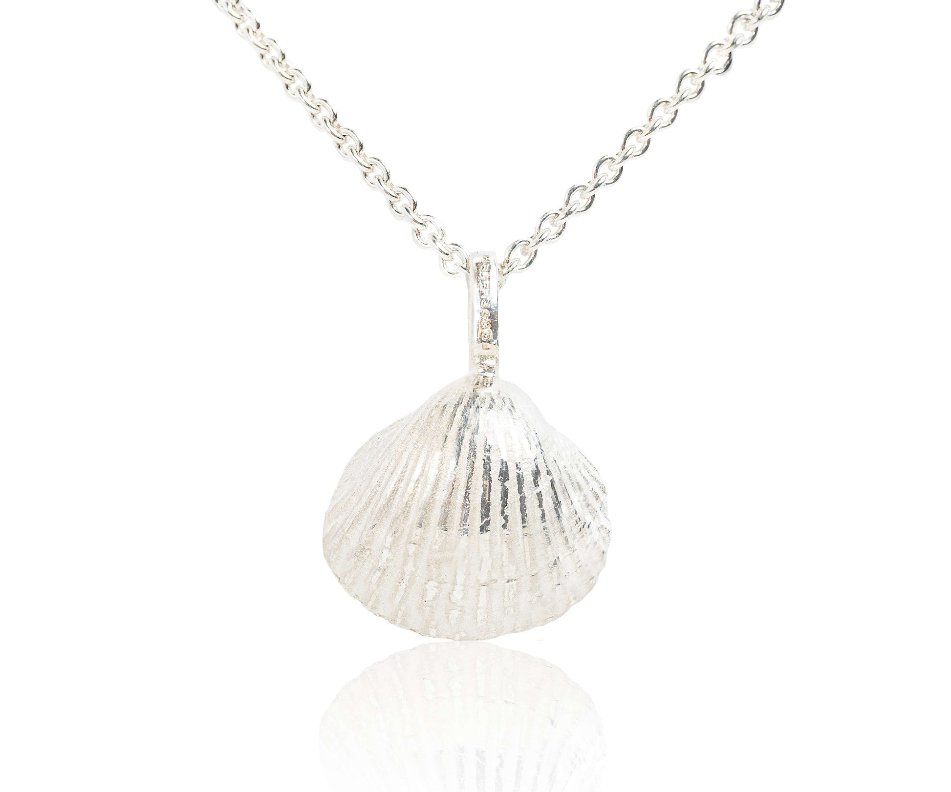 Die große Herzmuschel aus Wassersleben in 935/- Silber an einer 925/- Rundankerkette für den Hals