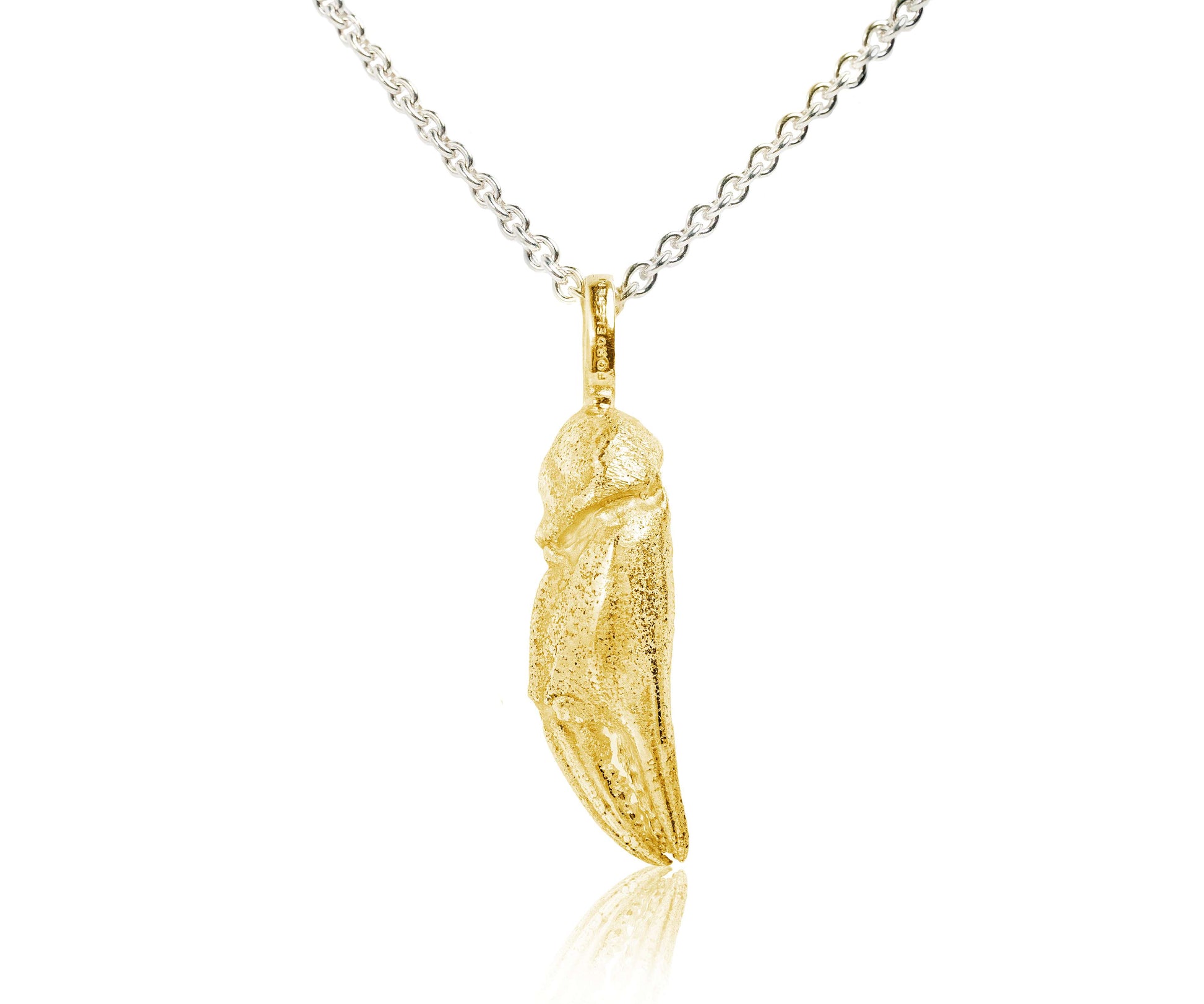 Die kleine Krebsschere in 585/- Gelbgold an einer 925/- Silber Rundankerkette für den Hals