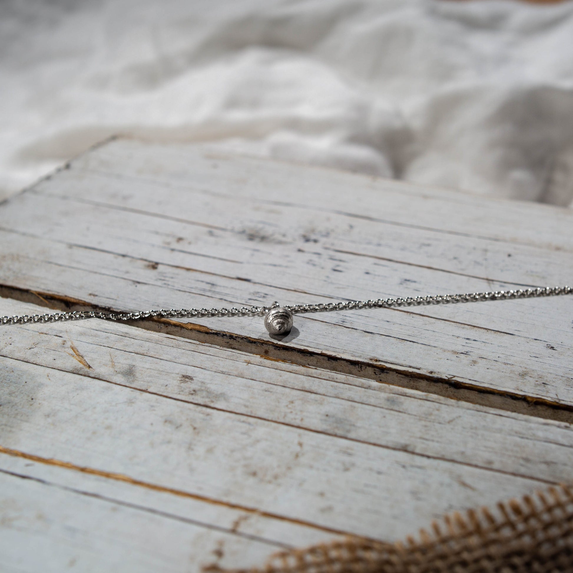 Die kleine Schnecke aus Holnis in 935/- Silber an einer 925/- Rundankerkette für den Arm